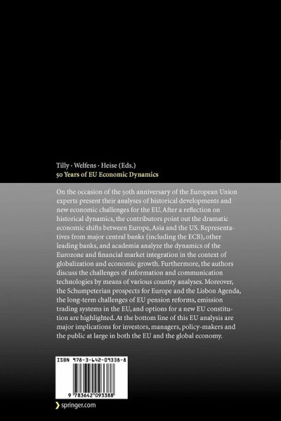 On the occasion of the 50th anniversary of the European Union experts present their analyses of historical developments and new economic challenges for the EU. After a reflection on historical dynamics, the contributors point out the dramatic economic shifts between Europe, Asia and the US. Representatives from major central banks (including the ECB), other leading banks, and academia analyze the dynamics of the Eurozone and financial market integration in the context of globalization and economic growth. Furthermore, the authors discuss the challenges of information and communication technologies by means of various country analyses. Moreover, the Schumpeterian prospects for Europe and the Lisbon Agenda, the long-term challenges of EU pension reforms, emission trading systems in the EU, and options for a new EU constitution are highlighted. At the bottom line of this EU analysis are major implications for investors, managers, policy-makers and the public at large in both theEU and the global economy.