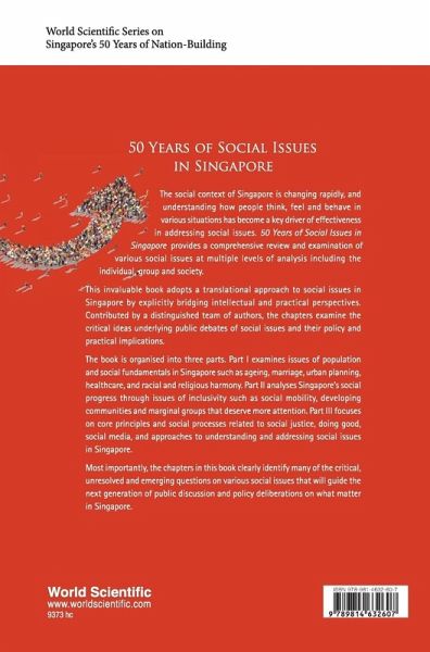 The social context of Singapore is changing rapidly, and understanding how people think, feel and behave in various situations has become a key driver of effectiveness in addressing social issues. 50 Years of Social Issues in Singapore provides a comprehensive review and examination of various social issues at multiple levels of analysis including the individual, group and society. This invaluable book adopts a translational approach to social issues in Singapore by explicitly bridging intellectual and practical perspectives. Contributed by a distinguished team of authors, the chapters examine the critical ideas underlying public debates of social issues and their policy and practical implications. The book is organized into three parts. Part I examines issues of population and social fundamentals in Singapore such as ageing, marriage, urban planning, healthcare and racial and religious harmony. Part II analyses Singapore's social progress through issues of inclusivity such as social mobility, developing communities and marginal groups that deserve more attention. Part III focuses on core principles and social processes related to social justice, doing good, social media and approaches to understanding and addressing social issues in Singapore. Most importantly, the chapters in this book clearly identify many of the critical, unresolved and emerging questions on various social issues that will guide the next generation of public discussion and policy deliberations on what matter in Singapore.