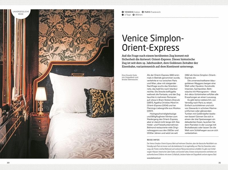 - Mit Doppelseiten zu außergewöhnlichen Zügen, wie dem Jacobite Steam Train oder dem Orient Express
