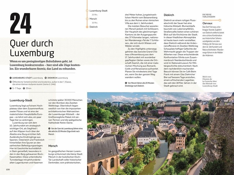 Jede Route wird detailliert vorgestellt und hält alle nötigen Informationen zur Reiseplanung wie Reise-Stopps, Ticket-Kauf oder Fahrtdauer bereit - damit Ihre Europareise mit der Bahn unvergesslich wird! Ergänzt wird das Reisebuch durch übersichtliche Streckennetzpläne zu allen Ländern, inspirierende Abstecher und Empfehlungen zur individuellen Routenverlängerung.