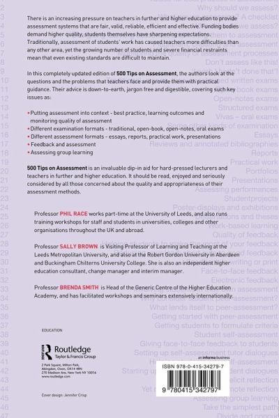 Phil Race is Emeritus Professor in Educational Development at the University of Leeds and also runs training workshops for staff and students in universities, colleges and other organisations throughout the UK. Sally Brown is Visiting Professor of Learning and Teaching at Robert Gordon University in Aberdeen and is Director of Membership Services for the Institute of Learning and Teaching in Higher Education. Brenda Smith is Associate Director at the Centre for Academic Practice, Nottingham Trent University.