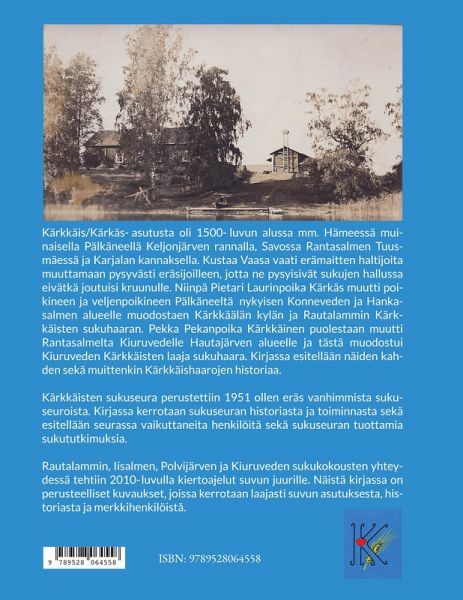 Kärkkäis/Kärkäs-asutusta oli 1500-luvun alussa mm. Hämeessä muinaisella Pälkäneellä Keljonjärven rannalla, Savossa Rantasalmen Tuusmäessä ja Karjalan kannaksella. Kustaa Vaasa vaati erämaitten haltijoita muuttamaan pysyvästi eräsijoilleen, jotta ne pysyisivät sukujen hallussa eivätkä joutuisi valtiolle. Niinpä Pietari Laurinpoika Kärkäs muutti poikineen ja veljenpoikineen Pälkäneeltä nykyisen Konneveden ja Hankasalmen alueelle muodostaen Kärkkäälän kylän ja Rautalammin Kärkkäisten sukuhaaran. Pekka Pekanpoika Kärkkäinen puolestaan muutti Rantasalmelta Kiuruvedelle Hautajärven alueelle ja tästä muodostui Kiuruveden Kärkkäisten laaja sukuhaara. Kirjassa esitellään näiden kahden sekä muittenkin Kärkkäishaarojen historiaa. Kärkkäisten sukuseura perustettiin 1951 ollen eräs vanhimmista sukuseuroista. Kirjassa kerrotaan sukuseuran historiasta ja toiminnasta sekä esitellään seurassa vaikuttaneita henkilöitä sekä sukuseuran tuottamia sukututkimuksia. Rautalammin, Iisalmen, Polvijärven ja Kiuruveden sukukokousten yhteydessä tehtiin 2010-luvulla kiertoajelut suvun juurille. Näistä kirjassa on perusteelliset kuvaukset, joissa kerrotaan laajasti suvun asutuksesta, historiasta ja merkkihenkilöistä.