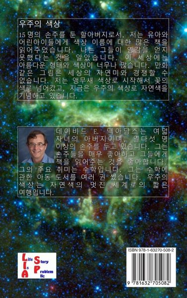 15명의 손주를 둔 할아버지로서, 저는 유아와 어린아이들에게 색상 이름에 대한 많은 책을 읽어주었습니다. 나는 그들이 영감을 얻지 못했다는 것을 알았습니다. 이 세상에는 아름다운 형태와 색상이 너무나 많습니다. 만화 같은 그림은 세상의 자연미와 경쟁할 수 없습니다. 저는 앵무새 색상로 시작해서 꽃의 색로 넘어갔고, 지금은 우주의 색상로 자연색을 기념하고 있습니다.