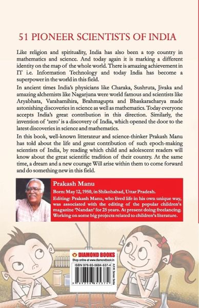 Like religion and spirituality, India has also been a top country in mathematics and science. And today again it is marking a different identity on the map of the whole world. There is amazing achievement in IT i.e. Information Technology and today India has become a superpower in the world in this field. In ancient times India's physicians like Charaka, Sushruta, Jivaka and amazing alchemists like Nagarjuna were world famous and scientists like Aryabhata, Varahamihira, Brahmagupta and Bhaskaracharya made astonishing discoveries in science as well as mathematics. Today everyone accepts India's great contribution in this direction. Similarly, the invention of 'zero' is a discovery of India, which opened the door to the latest discoveries in science and mathematics. In this book, well-known litterateur and science-thinker Prakash Manu has told about the life and great contribution of such epoch-making scientists of India, by reading which child and adolescent readers will know about the great scientific tradition of their country. At the same time, a dream and a new courage Will arise within them to come forward and do something new in this field.