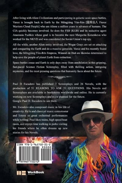After living with Alien Civilizations and participating in galactic-scale space battles, Vance is brought back to Earth by the M¿ngjiàng Yún-Rén [ ¿¿¿¿ Fierce Warriors Cloud People], who are Aliens a million years in advance of humans. The CIA quickly becomes involved. So does the FSB (KGB) and its seductive agent Anastasia Pushkin, whose goal is to become the next Margarita Konenkova, who worked for the NKVD and was considered the Soviet Union's top spy. All the while, another Alien entity is involved, the Wogar Grays, who are set on attacking and conquering the Earth and do a massive genocide. Vance and his recently found love, the M¿ngjiàng Yún-Rén Empress, Wánm¿i de Hü are likewise determined to help save the people of planet Earth from extinction.Space battles ensue, and Earth is only days away from annihilation in this gripping, fast-paced Science Fiction Screenplay, filled with thrilling action, intriguing mysteries, and the most pressing questions that humanity faces about the future.