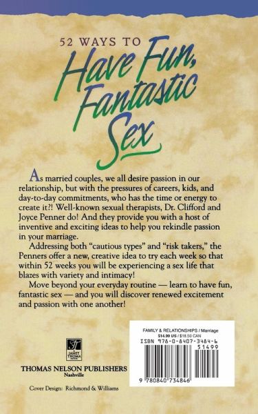 A collection of ideas for building an active, exuberant sex life. The authors help couples rekindle lost or lagging passion. Addressing both "cautious types" and "risk takers", the Penners offer inventive ideas to help couples rekindle lost or lagging passion.