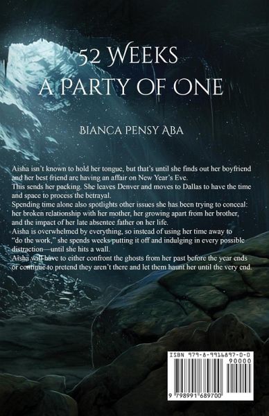 ¿WINNER: 2024 DBT Literary Awards "First Place: Contemporary Fiction" Aisha isn't known to hold her tongue, but that's until she finds out her boyfriend and her best friend are having an affair on New Year's Eve. This sends her packing. She leaves Denver and moves to Dallas to have the time and space to process the betrayal. Spending time alone also spotlights other issues she has been trying to conceal: her broken relationship with her mother, her growing apart from her brother, and the impact of her late absentee father on her life. Aisha is overwhelmed by everything, so instead of using her time away to "do the work," she spends weeks putting it off and indulging in every possible distraction-until she hits a wall. Aisha will have to either confront the ghosts from her past before the year ends or continue to pretend they aren't there and let them haunt her until the very end.