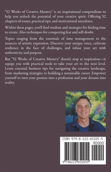 "52 Weeks of Creative Mastery" is an inspirational compendium to help you unlock the potential of your creative spirit. Offering 52 chapters of essays, practical tips, and motivational anecdotes. Within these pages, you'll find wisdom and strategies for finding time to create. Also techniques for conquering fear and self-doubt. Topics ranging from the essentials of time management to the nuances of artistic expression. Discover your unique voice, cultivate resilience in the face of challenges, and infuse your art with authenticity and purpose. But "52 Weeks of Creative Mastery" doesn't stop at inspiration-it equips you with practical tools to take your art to the next level. Learn essential business tips for navigating the creative landscape, from marketing strategies to building a sustainable career. Empower yourself to turn your passion into a profession and your dreams into reality. Engaging prose, humor and actionable advice, "52 Weeks of Creative Mastery" is more than just a book-it's a companion for every week of the year. Whether you're a writer, painter, musician, or creator in any other form, this book aims to help you rech your full creative potential. Let this book be your guide as you cultivate your craft, conquer your fears, and transform your art-and your life-one week at a time.