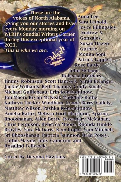Since 1984, Huntsville's WLRH public radio station has given local writers three minutes every Monday morning to read whatever they chose, to show their lives in the beautiful Tennessee Valley. These are their stories from the remarkable year of 2021: The boy who felt the world change when Yuri Gagarin left the Earth. The wild boys from the hills who thought parrots were painted pigeons. The Madison teenager who is Indian in appearance but All-American as she travels the world. The flamboyant woman who insisted that her friend's coffin be large enough for her headpiece and ball gown, only to find it would not fit in the grave. A bittersweet tribute to our Zoom romances this year. And the sense of loss that can be preserved in a simple turn into a big box store. And much, much more as fifty-plus very vivid stories by Tennessee Valley writers try to make sense of it all.