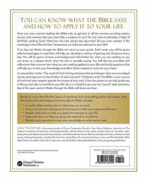 In this 52-week study in the Bible, bestselling author, pastor, and theologian John MacArthur guides readers through the storyline of the Bible, revealing major themes, connections, and applications.