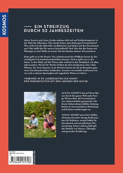 Kimchi, Kombucha, Kefir, Joghurt - fermentierte Lebensmittel sind aus der modernen Küche nicht mehr wegzudenken. Kein Wunder, sind die säuerlichen Leckereien doch nicht nur schmackhaft, sondern auch unfassbar gesund! Denn durch den Einsatz wilder sowie gezüchteter Bakterien oder Hefen werden Lebensmittel konserviert und steigern ihren Vitamin- und Nährstoffgehalt enorm. Doch als wäre das nicht schon spannend genug, kombinieren Alexis Goertz und Jonas Grube von @ediblealchemy.co in diesem Buch die Kunst der Fermentation mit den Kräften der wilden Natur! Entstanden ist ein einzigartiger Ratgeber voller schmackhafter und innovativer Ideen, wie Fermentationseinsteiger und -fortgeschrittene ihrem kulinarischen Leben neue Würze verleihen können.