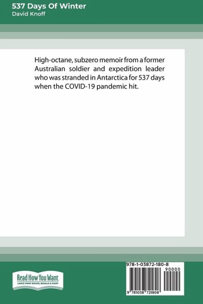 High-octane, subzero memoir from a former Australian soldier and expedition leader who was stranded in Antarctica for 537 days when the COVID-19 pandemic hit.
