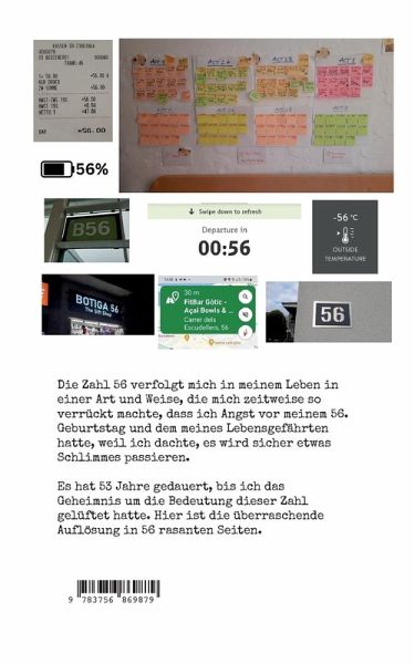 Die Zahl 56 verfolgt mich in meinem Leben in einer Art und Weise, die mich zeitweise so verrückt machte, dass ich Angst vor meinem 56. Geburtstag und dem meines Lebensgefährten hatte, weil ich dachte, es wird sicher etwas Schlimmes passieren.Es hat 53 Jahre gedauert, bis ich das Geheimnis um die Bedeutung dieser Zahl gelüftet hatte. Hier ist die überraschende Auflösung in 56 rasanten Seiten.