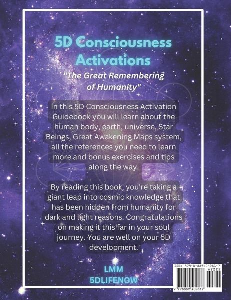 This book is for beginners, it helps you remember who you truly are and how our universe works through beautiful easy to understand images and charts. In this introductory 5D Consciousness Activation Guidebook you will learn about the true Human Body, Earth, Universe, Star Beings, Great Awakening Maps system, all the references you and resources you need to learn more basics and bonus exercises and tips along the way. By reading this book, you're taking a giant leap into cosmic knowledge that has been hidden from humanity for dark and light reasons. Congratulations on making it this far in your soul journey. You are well on your 5D development. Notable Resources & Topics Include:Dolores Cannon Dr. Joe Dispenza Louise Hay Billy Carson Dr. Steven Greer David Wilcock Dr. Jose Silva Kosta Makreas Debz Shakti Riss Flex Elizabeth April Sharma Pillay Ra the Law of One Spirit Science Dr. Salvatore Pais Corey Goode Emery Smith Bashar channeled by Darryl Anka Great Awakening Maps Human toroidal field Cosmic Web that connects us all Extraterrestrials Extra sensory abilities Universal laws Dimensional planes of existence Multidimensional human body States of consciousness Brain waves Reticular activating system Much much more Brace yourself as this book will change your life and the world as we know it.