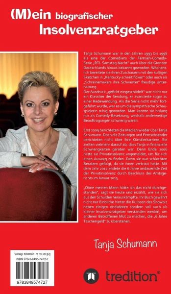 Erst 2009 berichteten die Medien wieder über Tanja Schumann. Doch die Zeitungen und Fernsehsender berichteten nicht über ihre Künstlerkarriere. Sie zielten vielmehr darauf ab, dass Tanja in finanzielle Schwierigkeiten geraten war. Denn Ende 2006 hatte sie Privatinsolvenz angemeldet, um für sich einen Ausweg zu finden. Denn sie war schlechten Beratern gefolgt, da sie ihnen vertraut hatte. Mit dem Jahr 2012 endete die 6 Jahre andauernde Zeit der Privatinsolvenz durch Beschluss des Amtsgerichts im Januar 2013. Ohne meinen Mann hätte ich das nicht durchgestanden , sagt sie heute und erzählt, wie sie sich aus den Schulden herauskämpfte. Ihr Buch gewährt nicht nur Einblicke hinter die Kulissen des Showbiz neben einigen Anekdoten sondern soll auch als kleiner Insolvenzratgeber verstanden werden, um anderen Betroffenen Mut zu machen, die 6 Jahre Taschengeld zu überstehen.
