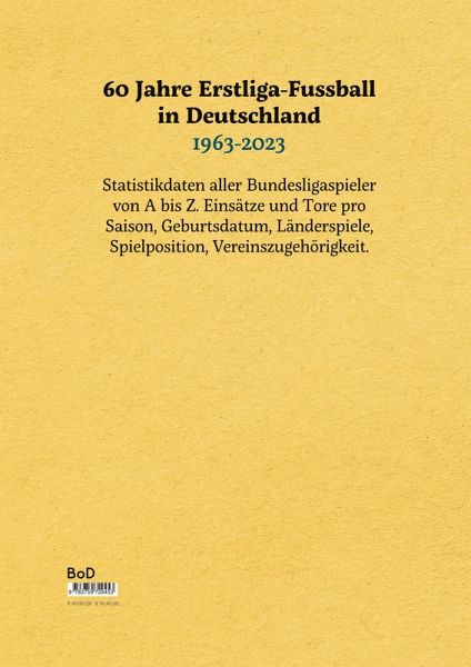 60 Jahre Bundesliga 1963-2023 Statistikdaten aller Bundesligaspieler von A bis Z. Einsätze und Tore pro Saison, Geburtsdatum, Länderspiele, Spielposition, Vereinszugehörigkeit.