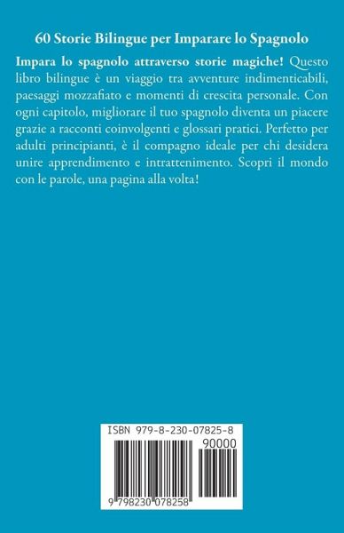 Impara lo spagnolo attraverso storie magiche! Questo libro bilingue è un viaggio tra avventure indimenticabili, paesaggi mozzafiato e momenti di crescita personale. Con ogni capitolo, migliorare il tuo spagnolo diventa un piacere grazie a racconti coinvolgenti e glossari pratici. Perfetto per adulti principianti, è il compagno ideale per chi desidera unire apprendimento e intrattenimento. Scopri il mondo con le parole, una pagina alla volta!