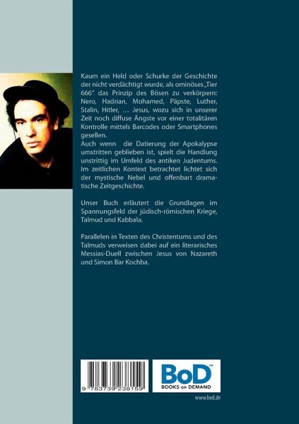"Armageddon", Endzeiterwartungen, Mysterien, die Verteufelung politischer Rivalen, Verschwörungstheorien aller Arten - für all dies und mehr steht in besonderer Weise die biblische Zahl 666, berühmt und berüchtigt aus der Apokalypse des Johannes, dem obskuren Abschluss der christlichen Bibel. Kaum ein Held oder Schurke der Geschichte der letzten zwei Jahrtausenden, der von seinen Gegnern nicht verdächtigt wurde, als ominöses "Tier 666" das Prinzip des Bösen zu verkörpern: Nero, Hadrian, Mohamed, Päpste, Luther, Stalin, Hitler, ... Jesus, wozu sich in unserer Zeit noch diffuse Ängste vor einer totalitären Kontrolle mittels Barcodes oder Smartphones gesellen.Auch wenn Autorenschaft und Datierung der Apokalypse umstritten geblieben ist, spielt die Handlung unstrittig im Umfeld des antiken Judentums. In zeitlichen Kontext und kulturellen Milieu betrachtet lichtet sich der mystische Nebel und offenbart die Beschreibung dramatischer Zeitgeschichte.Unser Buch erläutert die geschichtlichen, methodischen und sprachlichen Grundlagen im antiken Spannungsfeld zwischen Apokalyptik, jüdisch-römischer Kriege, Talmud und Kabbala. Die für viele Leser unerwarteten, oft wortgleichen Parallelen in den Texten des Christentums und des Talmuds verweisen dabei auf ein literarisches Messias-Duell zwischen Jesus von Nazareth und Simon Bar Kochba, die beide von ihren Anhängern mit der berühmten Stern-Weissagung der Bibel legitimiert wurden.