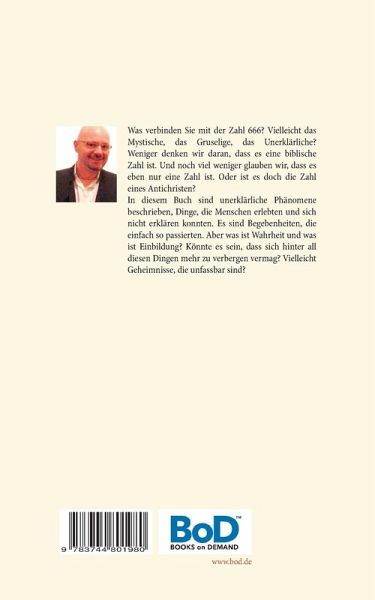 Was verbinden Sie mit der Zahl 666? Vielleicht das Mystische, das Gruselige, das Unerklärliche? Weniger denken wir daran, dass es eine biblische Zahl ist. Und noch viel weniger glauben wir, dass es eben nur eine Zahl ist. Oder ist es doch die Zahl eines Antichristen? In diesem Buch sind unerklärliche Phänomene beschrieben, Dinge, die Menschen erlebten und sich nicht erklären konnten. Es sind Begebenheiten, die einfach so passierten. Aber was ist Wahrheit und was ist Einbildung? Könnte es sein, dass sich hinter all diesen Dingen mehr zu verbergen vermag? Vielleicht Geheimnisse, die unfassbar sind?