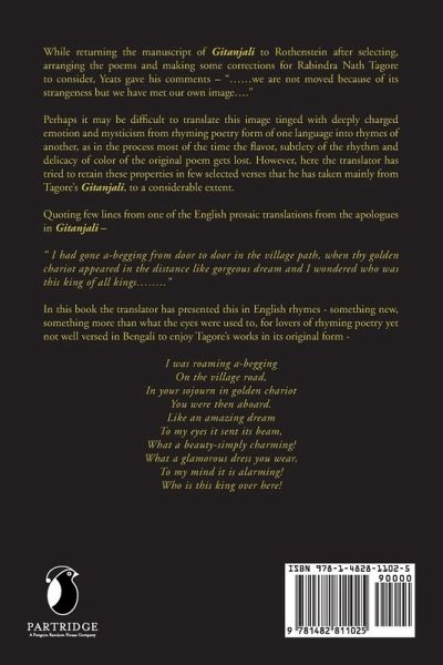 The book '69 Verses' is a collection of songs and poems, a tiny slice, fished out from the vast sea of Nobel Laureate Rabindranath Tagore's creation. These songs and poems are translated in English rhyming poetry form the original Bengali compositions. Of these 69 verses, most of them are from Gitanjali - the book that overwhelmed Yeats when he first read it, and which won Tagore the Nobel Prize in 1913 and earned a place for the modern Indian literature in the map of world literature. The entire gamut of human emotions: hopes, aspirations, fear and frustration, the joy, the pangs all find authentic expressions in the vast oeuvre of Tagore's works. The present collection is mainly intended to provide a sample of his lyrical songs tinged with mysticism. The roots of these poems hark back right to the very earliest poetic achievements of humankind ---- the ancient Vedas. They also echo the strains of the medieval mystic saints of India and the Sufis, of the wandering minstrels that have not yet been completely destroyed from the rural India by the invasive modernity. These poems thus carry the resonances of the spiritual heart of India's long history. Music is an essential quality of Tagore's mystic poems. The translator has attempted with admirable success to communicate the spirit and rhythm of the Bengali originals. This has not been attempted so far by more than one or two translators because most of the time the flavor of the original work gets subdued, subtlety of rhythm gets reduced and the delicacy of color gets lost in translation. However, here the translator has tried to retain these properties of Tagore's creations to a considerable extent.