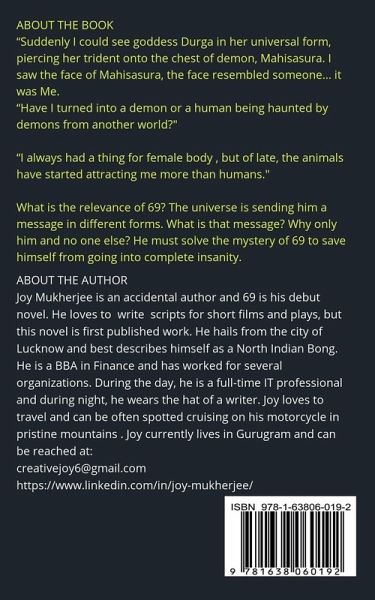 "Suddenly I could see goddess Durga in her universal form: red eyes, multiple hands, piercing her trident onto the chest of demon, Mahisasura. I saw the face of Mahisasura, the face resembled someone... it was Me. Next, I saw the idol of goddess Kali walking towards me, with multiple severed heads in her hand; all the heads were mine. Next, I saw the idol of goddess Kali walking towards me, with multiple severed heads in her hand; all the heads were mine. I could feel goddess Durga's trident piercing into my chest and goddess Kali placing her feet on my neck." "Have I turned into a demon or a human being haunted by demons from another world? "I always had a thing for female body , but of late, the animals have started attracting me more than humans." "The shaman said that the Ayahuasca ritual would not fix anything; it would show me a path. What path was I being shown?" What is the relevance of 69? The universe is sending him a message in different forms. What is that message? Why only him and no one else? He must solve the mystery of 69 to save himself from going into complete insanity