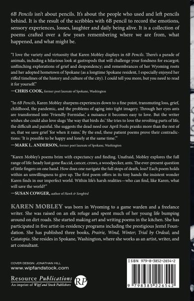 6B Pencils isn't about pencils. It's about the people who used and left pencils behind. It is the result of the scribbles with 6B pencil to record the emotions, sensory experiences, losses, laughter and daily being alive. It is a collection of poems crafted over a few years remembering where we are from, what happened, and what might be.