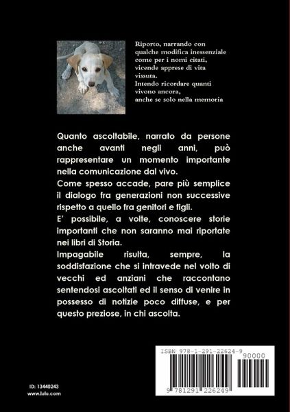 Quanto ascoltabile, narrato da persone anche avanti negli anni, può rappresentare un momento importante nella comunicazione dal vivo. Come spesso accade, pare più semplice il dialogo fra generazioni non successive rispetto a quello fra genitori e figli. E' possibile, a volte, conoscere storie importanti che non saranno mai riportate nei libri di Storia. Impagabile risulta, sempre, la soddisfazione che si intravede nel volto di vecchi ed anziani che raccontano sentendosi ascoltati ed il senso di venire in possesso di notizie poco diffuse, e per questo preziose, in chi ascolta.