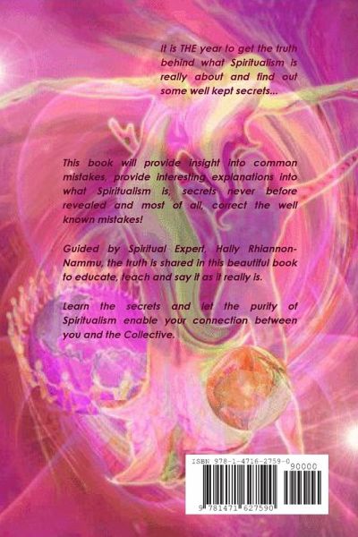 Get the Secrets behind what Spiritualism is really about. This book will provide insight into common mistakes, interesting explanations into what Spiritualism is, what it can do and how this may benefit you. There are many out there that claim to know what Spiritualism is about, however, Hally Rhiannon-Nammu is one of the rare few that actually does know. Allow the Spiritual Expert and renowned Shaman, Hally Rhiannon-Nammu, to share the truth in this beautiful full colour book to educate, teach and say it as it really is.
