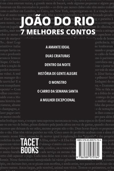 Na coleção 7 Melhores Contos, o crítico August Nemo apresenta autores que fazem parte da história da literatura em língua portuguesa. Neste volume temos João do Rio, escritor e cronista brasileiro. João do Rio representou o surgimento de um novo tipo de jornalista na imprensa brasileira do início do século XX. Até então, o exercício do jornalismo e da literatura por intelectuais era encarado como "uma atividade menor para pessoas que possuíam muitas horas vagas à disposição". - A amante ideal: um homem bem-sucedido e indiferente ao amor debate sobre a mulher ideal com seus amigos, levando a uma reflexão surpreendente sobre o verdadeiro significado do amor¿¿. - Duas criaturas: em um elegante hotel, personagens distintos se envolvem em uma conversa sobre amor e desejo, revelando complexas dinâmicas emocionais e sociais¿¿. - Dentro da noite: um encontro inesperado e perturbador desafia as percepções de realidade e loucura, envolvendo os leitores em um mistério intrigante¿¿. - História de gente alegre: em um terraço luxuoso, personagens vibrantes desfrutam de uma noite de festa, revelando nuances de alegria e melancolia através de suas interações¿¿. - O monstro: um homem se confessa um "monstro" para seus amigos após o jantar, revelando segredos obscuros em uma narrativa intensa e introspectivä¿. - O carro da semana santa: um carro misterioso aparece todas as quintas-feiras santas, suscitando curiosidade e medo naqueles que o encontram, levando a um desfecho surpreendente¿¿. - A mulher excepcional: em um salão opulento, uma atriz famosa discute sua necessidade de paz e refúgio, expondo as tensões entre fama e tranquilidade¿¿. Se você gostar de boa literatura, confira os outros livros da Coleção 7 melhores contos. Boa leitura!