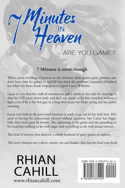 7 Minutes is never enough When you're building a business as the ultimate adult games party planner, you don't have time for games in real life but that's the problem Cassandra Moreland has when she butts heads with security expert Lucas Wilhelm. Lucas is a six foot five wall of testosterone and a thorn in her side for wanting to shut her VIP party down early and she's not about to let him interfere without a fight, even if he is the first guy in a long time to get her heart racing and her palms sweating. Lucas can't believe the pint-sized brunette is ready to go toe to toe with him. He's used to having his instructions obeyed without question, but Cassie has bigger balls than most guys he knows. The tightening in his groin and the pounding in his head has nothing to do with anger and everything to do with sexual interest. The kind of interest that deserves a whole weekend of party games to explore. This story features wet t-shirts, steamy sex and beads-but not the kind you think.