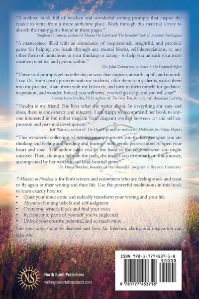 Have you always wanted to take up writing or journaling but don't know where to start? Have you been writing for years but are struggling with writer's block? Would you like to learn more about yourself, make sense of your life, and reconnect to parts of yourself you've overlooked? If you said yes to any of the above, this book is for you! 7 Minutes to Freedom offers a roadmap for writers and nonwriters to find their voice, embrace their creativity, and radically transform their writing and their life. It is for anyone interested in self-discovery, journaling, creativity, and deep spiritual insight. What if you could let go of limiting beliefs, build a joyful daily writing practice, and discover your authentic voice and your authentic life? Freedom is closer than you think. Freedom to write and rewrite your life. Freedom to write yourself happy, clear, and free. Seven minutes at a time. With one hundred simple seven-minute writing meditations, this book will help you rediscover the joy of writing, build new daily habits, and embrace the freedom that comes with knowing you can write and live without fear. Use the powerful meditations in this book to learn exactly how to: · Overcome writer's block and develop your authentic voice · Quiet your inner critic and build a joyful daily writing practice · Abandon limiting beliefs and self-judgment · Unlock your creative potential and change the course of your life · And so much more! If you're ready to make powerful discoveries about yourself and improve your writing habits forever, get your copy today and see just how far freedom, clarity, and inspiration can take you!