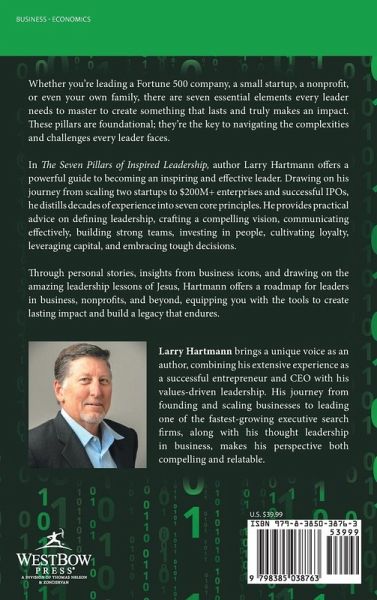 What if your legacy as a leader could be built on seven timeless pillars? The Seven Pillars of Inspired Leadership is a powerful leadership development blueprint from Larry Hartmann, a faith-driven entrepreneur who scaled multiple startups to over $200 million in revenue and led a company through a successful IPO and eventual sale to American Express. Whether you're leading a Fortune 500 firm, launching a startup, guiding a nonprofit, or shaping your family, Hartmann reveals the seven foundational principles every leader must master to make a lasting impact. With a blend of entrepreneurial leadership insight, real-world experience, and faith-based leadership values, Hartmann walks you through how to cast a bold vision, communicate with influence, build high-performing teams, invest in people, cultivate loyalty, master capital strategy, and make tough decisions. He shares compelling personal stories and lessons from legendary business leaders such as Steve Jobs and Elon Musk. He also draws profound insights from the greatest leader of all time, Jesus Christ. This is more than just a business book. It is a personal mentorship in print. It equips you to scale your influence, lead with clarity, and build a leadership legacy rooted in purpose, people, and impact. If you are ready to level up your leadership, start with the seven pillars that never fail. Buy now and lead with lasting purpose.