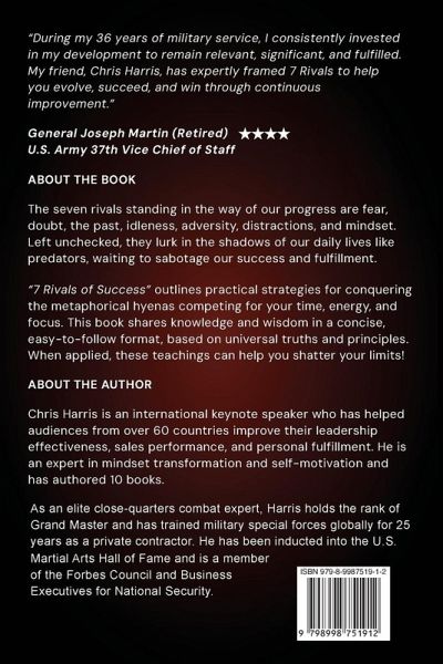 The seven rivals standing in the way of our progress are fear, doubt, the past, idleness, adversity, distractions, and mindset. Left unchecked, they lurk in the shadows of our daily lives like predators, waiting to sabotage our success and fulfillment. "7 Rivals of Success" outlines practical strategies for conquering the metaphorical hyenas competing for your time, energy, and focus. This book shares knowledge and wisdom in a concise, easy-to-follow format, based on universal truths and principles. When applied, these teachings can help you shatter your limits!