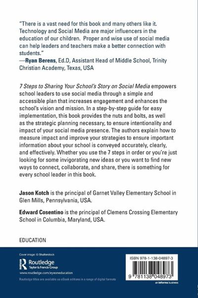 7 Steps to Sharing Your School's Story on Social Media empowers school leaders to use social media through a simple and accessible plan that increases engagement and enhances the school's vision and mission. In a step-by-step guide for easy implementation, this book provides the nuts and bolts, as well as the strategic planning necessary, to ensure intentionality and impact of your social media presence. The authors explain how to measure impact and improve your strategies to ensure important information about your school is conveyed accurately, clearly, and effectively. Whether you use the 7…mehr