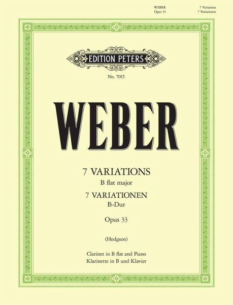 7 Variations in Bb major for Bb clarinet and piano by German composer Carl Maria von Weber. Edited by Peter Hodgson. Carl Maria von Webers "7 Variationen" in B-Dur für B-Klarinette und Klavier wurden herausgegeben von Peter Hodgson.