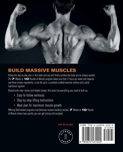 BUILD MASSIVE MUSCLES Follow the day-by-day plan in this book and you will finally achieve the body you've always wanted. Packed with clear charts and helpful photos, this book has everything you need to bulk up: -Easy-to-follow workouts -Step-by-step lifting instructions -Meal plan for maximum muscle growth The 7 Weeks to 10 Pounds of Muscle program takes less than 2 hours per week and requires just three simple ingredients: a can-do spirit, a carefully crafted exercise routine and a solid nutritional regimen. Offering field-tested programs and delicious muscle-building recipes, 7 Weeks to 10 Pounds of Muscle shows how quickly you can get strong and sculpted.
