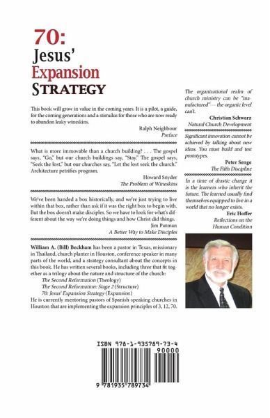 Bill Beckham gives a historical and strategic perspective of God's expansion people movement that is built upon the unique and interrelated groups of 3, 12, and 70. He makes the case that the church must do three things in the 21st century: (1) Add a mid-sized group of seventy that can organize and supervise church planting expansion, (2) make Christ the presence, power, and purpose of existing and future small groups, and (3) establish friendship triads of two or three as the contagious factor for making disciples and reaching unbelievers. Beckham gives a five-step strategy through which a church, up and down the spectrum from a mini church, mega church, cell church, or a church plant, can, by using Jesus' groups of 3/12/70, experience New Testament expansion rather than just growing or maintaining in a building.
