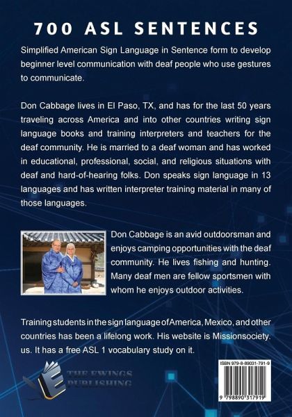 Simplified American Sign Language in Sentence form to develop beginner level communication with deaf people who use gestures to communicate. Don Cabbage lives in El Paso, TX, and has for the last 50 years traveling across America and into other countries writing sign language books and training interpreters and teachers for the deaf community. He is married to a deaf woman and has worked in educational, professional, social, and religious situations with deaf and hard-of-hearing folks. Don speaks sign language in 13 languages and has written interpreter training material in many of those languages.