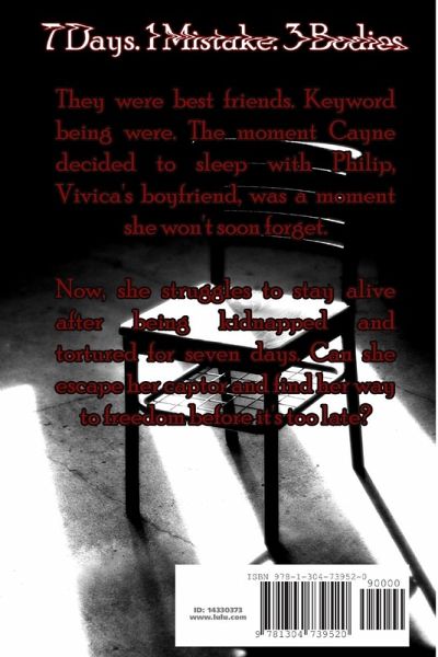 7 Days. 1 Mistake. 3 Bodies They were best friends. Keyword being were. The moment Cayne decided to sleep with Philip, Vivica's boyfriend, was a moment she won't soon forget. Now, she struggles to stay alive after being kidnapped and tortured for seven days. Can she escape her captor and find her way to freedom before it's too late?