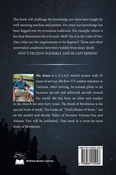 This book will challenge the knowledge you have been taught by well-meaning teachers and pastors. For years our knowledge has been fogged over by erroneous traditions. For example: where is the final destination for evil souls. Hell? No, it is the Lake of Fire. Also, what are the requirements to be Rapture? These and other unrevealed conditions have been hidden from Jesus' death. DON'T DECEIVE YOURSELF AND BE LEFT BEHIND.
