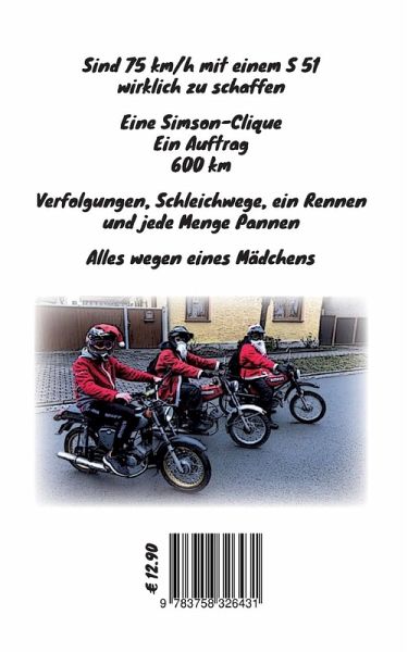 Andre Pfeifers eigene Erlebnisse mit einer S 51 electronic zu DDR-Zeiten gemischt mit den Zweitaktabenteuern seines Sohnes in der heutigen Zeit sind der Treibstoff der folgenden Erzählung.Eine Simson Clique.Ein Auftrag.600 Kilometer.Verfolgungen, Schleichwege, ein Rennen und jede Menge Pannen.Alles wegen eines Mädchens.