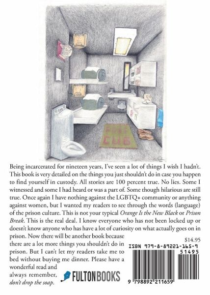 Being incarcerated for nineteen years, I've seen a lot of things I wish I hadn't. This book is very detailed on the things you just shouldn't do in case you happen to find yourself in custody. All stories are 100 percent true. No lies. Some I witnessed and some I had heard or was a part of. Some though hilarious are still true. Once again I have nothing against the LGBTQ+ community or anything against women, but I wanted my readers to see through the words (language) of the prison culture. This is not your typical Orange Is the New Black or Prison Break. This is the real deal. I know everyone who has not been locked up or doesn't know anyone who has have a lot of curiosity on what actually goes on in prison. Now there will be another book because there are a lot more things you shouldn't do in prison. But I can't let my readers take me to bed without buying me dinner. Please have a wonderful read and always remember, don't drop the soap.