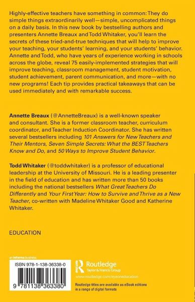 In this new book by bestselling authors and presenters Annette Breaux and Todd Whitaker, youâ ll learn the secrets of these tried-and-true techniques that will help to improve your teaching, your studentsâ learning, and your studentsâ behavior.