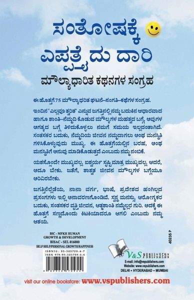 As the name indicates, 75 Ways to Happiness is an invaluable collection of 75 value-based stories written and compiled by the well-known author, J.M. Mehta. Each story begins with a line of wisdom expressing the crux of the story and teaching a simple, but important value of life which should be imbibed by one and all to remain happy and become successful. It is a fact that in our busy lifestyle of today, we rarely get the time to understand the singificance of values which form the basis of our lives and help us to remain happy. The value-based stories given in the book basically aim to carve out this happiness and teach us the ways to lead a happy life. There is also a box at the end of each story named ""Something Extra"". This is where the author has emphasised the deep, inner meaning hidden within the story highlighting the moral value associated with it to stay happy and contented in life. Therefore dear readers, go through these 75 invaluable collection of stories and enlighten your mind and soul. #v&spublishers