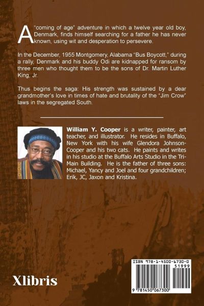 77 Jackson Street, Rear is a coming-of-age adventure in which twelve year old Denmark finds himself searching for a father he has never known. During the 1955 "bus boycott" in Montgomery, Alabama, Denmark and his friend Odi are kidnapped and held for ransom by three men who think they are the sons of Dr. Martin Luther King, Jr. Using wit and desperation to persevere, Denmark draws upon his beloved grandmother's teachings and the character she inspired in him during the hateful and brutal "Jim Crow" era of the segregated South. Can he and his friend get out of their predicament?