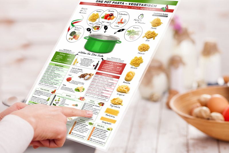 Die Mix & Cook Kartenküche ist der Schlüssel zu genussvollen Momenten, Fitness und effizientem Küchenzauber. Dies 7-teilige Set , laminiert und im praktischen DINA4-Format , bringt Grüne Smoothies, schnelle Pasta und stimmungsvolle Cocktails direkt in deine Küche. Bleibe fit, spare Zeit und genieße jeden Tag mit Leichtigkeit und Geschmack!