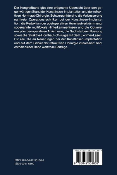 Für alle, die an Neuerungen bei der Kunstlinsen-Implantation und auf dem Gebiet der refraktiven Chirurgie interessiert sind, enthält dieser Band wertvolle Beiträge.