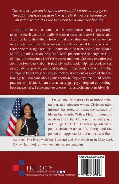 The average person keeps as many as 13 secrets at any given time. Do you have an abortion secret? If you are keeping an abortion secret, it's time to surrender it and seek healing. Abortion hurts. It can hurt women emotionally, physically, psychologically, and spiritually. Abortion hurts the fetus who feels pain. Abortion hurts the father whose primal masculine energy to protect his unborn child is thwarted. Abortion hurts the extended family, who will forever be missing a relative. Finally, abortion hurts society by causing all of us to miss out on the gift of God's precious son or daughter. Given that it is sometimes hard for women and men who have experienced abortion loss to talk about it publicly and to seek help, this book serves as a guide for private, personal healing. In this book, you will find the courage to begin your healing journey by doing one or more of the following: tell someone about your abortion, forgive yourself and others, practice mindfulness, name your baby, get psychological counseling, become pro-life, help someone choose life, and change your lifestyle.