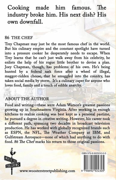 Trey Chapman may just be the most famous chef in the world. But his culinary empire and the constant spotlight have turned into a pressure cooker he desperately needs to escape. When Trey learns that he can't just walk away from his celebrity, he enlists the help of his rogue little brother to devise a plan. Joey Chapman, though, has problems of his own. He's being hunted by a federal task force after a wheel of illegal, maggot-ridden cheese, that he smuggled into the country, has taken social media by storm. It's a culinary caper for anyone who loves food, family and a touch of edible anarchy.