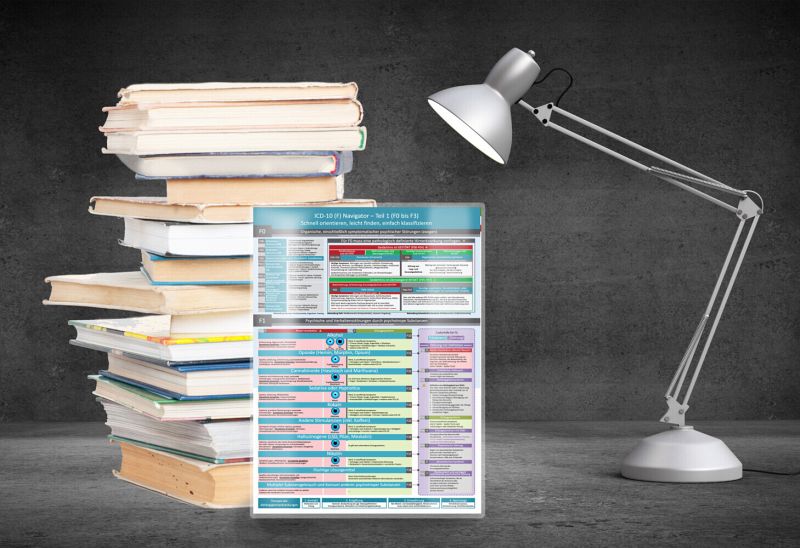 Die ICD-10 Navigator Teil 1 und 2 fassen auf jeweils 2 Seiten über 40 Störungsbilder der Kapitel F übersichtlich zusammen. Mit Grafiken und Tabellen erkennst du Diagnosen effizient.